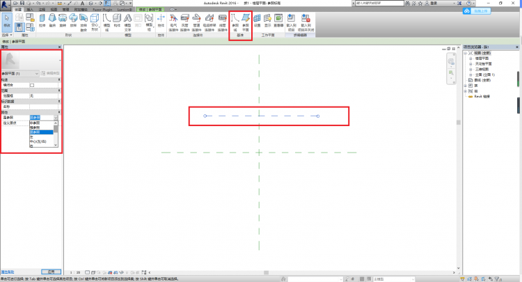 属性栏可以为绘制的参照平面指定名称,在设置工作平面时可以