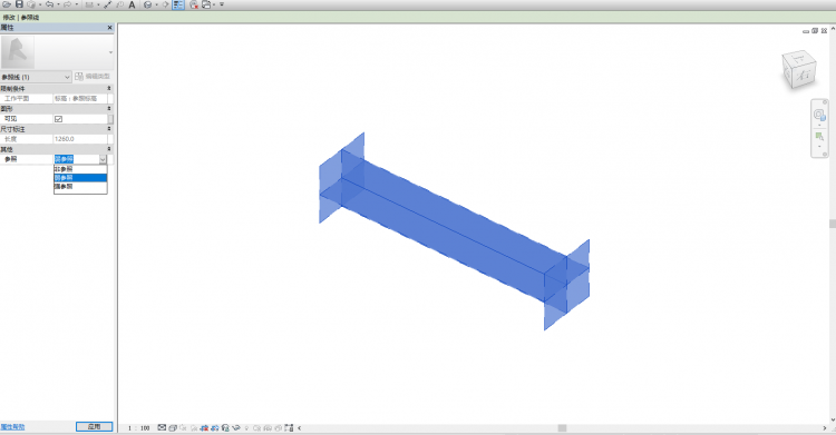 在“是参照”属性中将参照平面选择为“非参照”,那么该参照平面在项目中将无法被捕捉,无法进行尺寸标注等;选择为“强参照”时,该参照平面的优先级最高,无论何时都能捕捉到,就算多个图元重叠,也能第一个被选中;选择“弱参照”时,该参照平面需要借助“Tab”键才能捕捉到。“定义原点”属性用来定义族的插入点,一般默认为(0,0,0),不做修改。2、参照线比参照平面多了两个端点,和两个工作平面,而且参照平面是以虚线显示,而参照线是实线显示,在三维视图中,只能看到参照线,看不到参照平面。