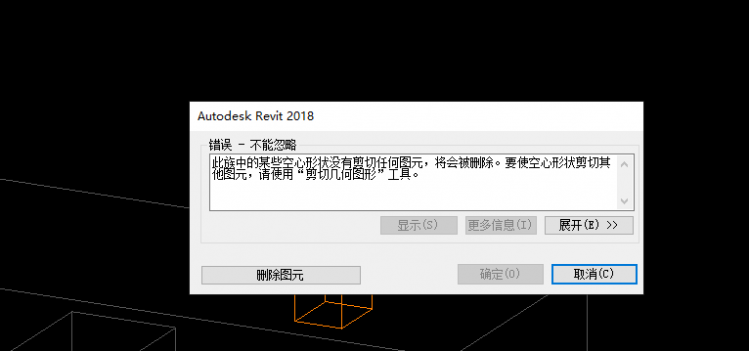 1、使用内建创建空心与楼板相交,单独的空心是无法完成创建的,要在完成模型前与楼板进行剪切,如图所示。