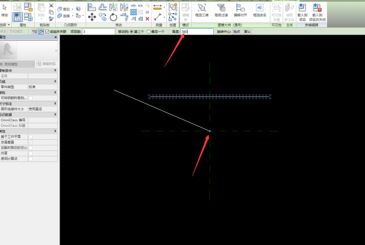 接着使用阵列模型建载入的族参照平面交点为圆形做360°的圆周阵列,如图所示。