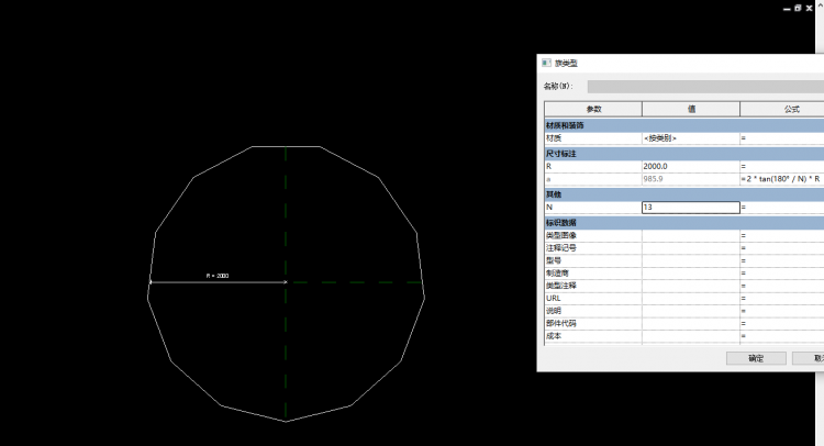 在Revit中将正多边形参数化是比较麻烦的,需要做一个嵌套族。下面讲解如何将正多边参数化。