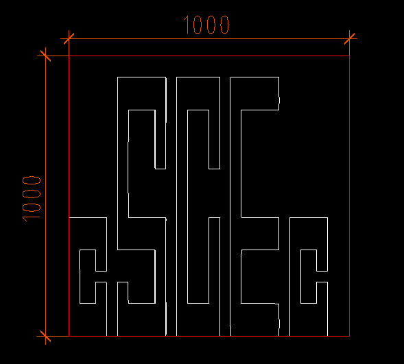 在CAD中打开上一步保存的DXF文件,根据需求缩放图像,这里缩放到1m*1m,如图所示。