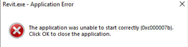 在安装Windows 10的最新更新后,Revit无法打开并显示以下错误: