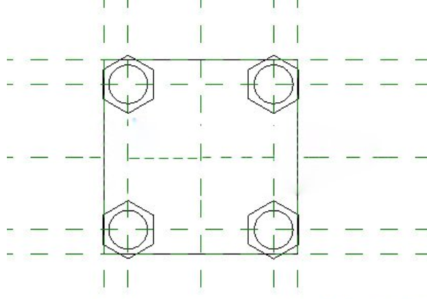再绘制4条参照平面定位螺母位置,然后绘制四个螺母洞与螺母。如图所示: