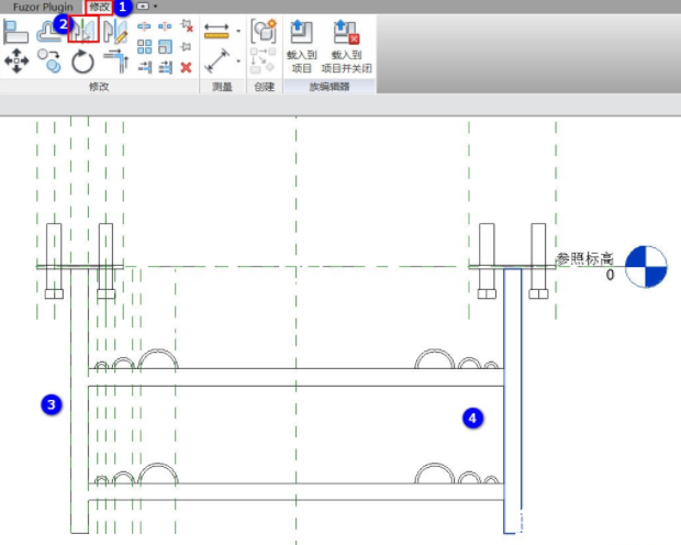 在到立面上绘制2条参照平面,然后再绘制一根立钢管。如图所示:
