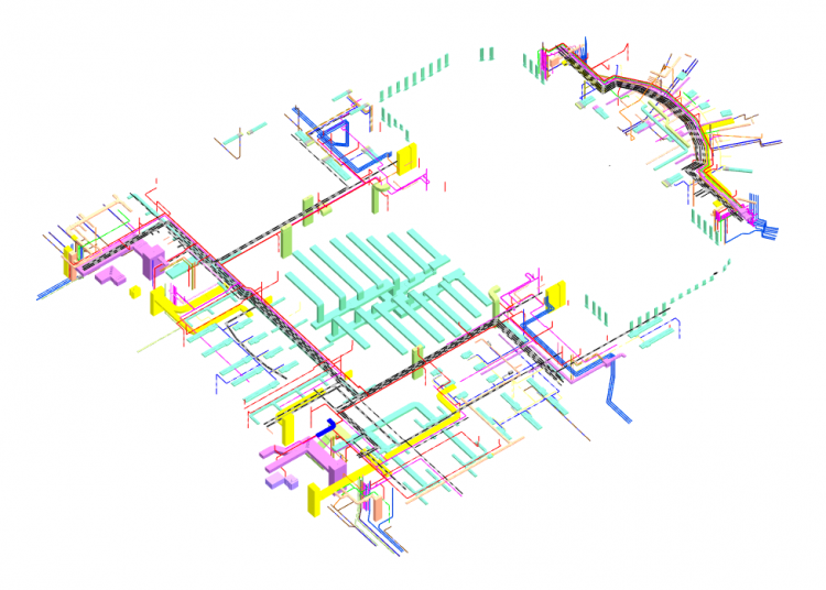 1. 首先在Revit中新建一个项目文件,在平面视图中随便画几条管道,如图所示。