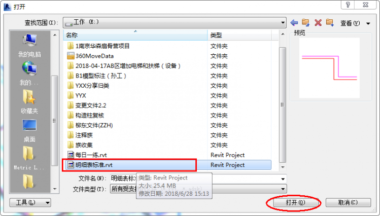4. 打开另一个需要添加明细表的项目文件,如图所示。