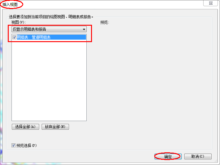 6.在“插入视图”对话框中选择“明细表”,如图所示。