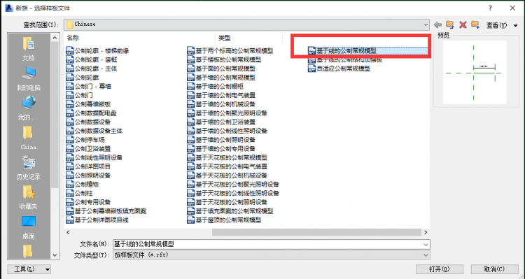 1. 打开revit,新建族-基于线的常规模型,如图所示。