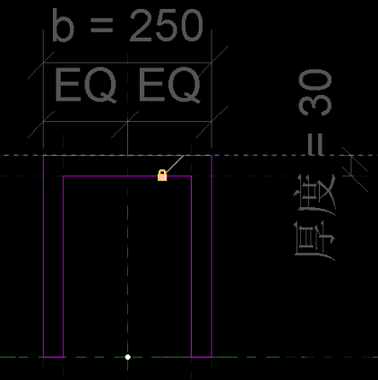 5,依次绘制窗帘盒的轮廓线,并将其锁定到刚刚绘制的参照平面上面,如图所示。