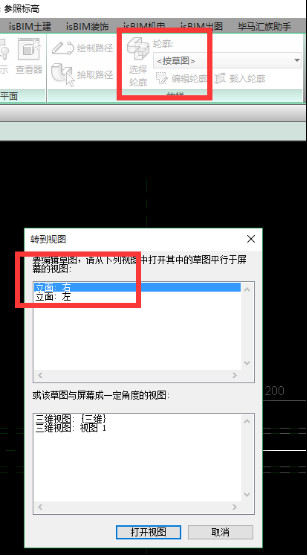 4. 绘制好路径后,选择编辑轮廓 ,在弹出对话框中选择“立面:右”,转到右立面视图,如图所示。