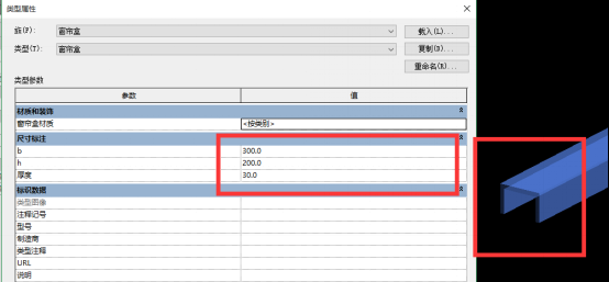 2. 打开后到右立面视图先设置一下窗帘盒的轮廓参数,如图所示。