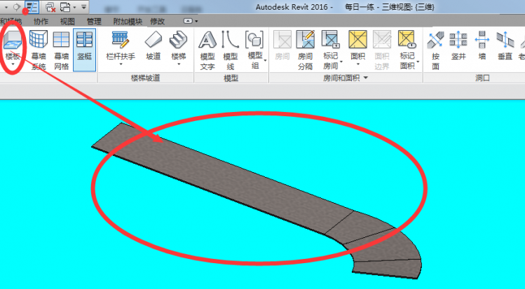 1、先根据标高,把弧形坡道板画出来。