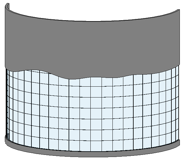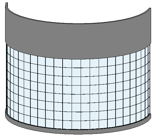 最后用永久隐藏“eh”隐藏屋顶,就得到了想要的曲顶幕墙,如图所示。