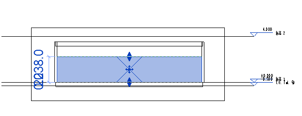 4、添加一个剖面,并进入剖面视图,让房间高度偏移大于楼层高度,如图所示。