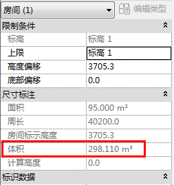5、此时“房间(1)”属性栏的“体积”即为该房间的准确体积,如图所示。