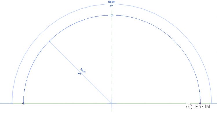 1、新建公制常规模型,点击创建→放样融合命令,然后在平面内首先绘制如图所示的路径,(具体尺寸根据实际工程确定,下列尺寸仅为示例)。