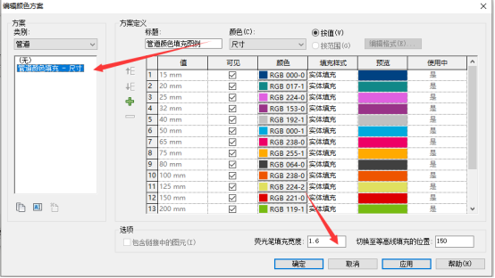 2、编辑“管道颜色填充”,将方案改选为无;如果的确需要颜色填充图例,那么就稍微把荧光笔宽度的值稍微改小一点,如图所示。
