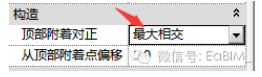 附着对正:最大相交(即柱子离屋面最近的一端到柱子最远的一端,均与屋面相交)