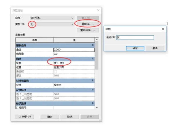 3、把瓦族载入到项目中,在建筑选项卡下选择竖梃,编辑矩形竖梃,类型改为瓦,将轮廓改为族1,也就是瓦族。