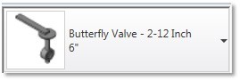 此示例使用蝶阀构件,其 Revit 族名称为“蝶阀 - 2 -12 英寸”,类型为 6”,如下面的类型选择器中所示。