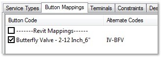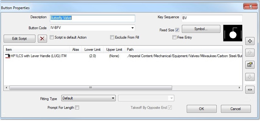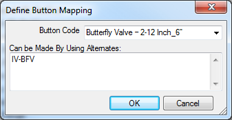 此时会显示“按钮属性”对话框。在以下示例中,蝶阀构件的按钮代码是 IV-BFV。
