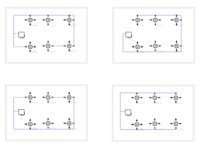 解决方案:允许您在选项栏上选择“解决方案类型”和建议的解决方案。 每个布局解决方案均包含一个干管(蓝色)和一个支管(绿色)。 下列可用的解决方案类型包括: