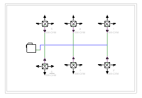 - 表示四通。通过这些连接控制,可以在干管和支管分段之间将 T 形三通或四通连接向左右或上下移动。移动操作仅限于与连接控制符号关联的端点。