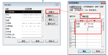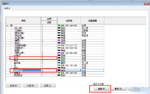 其实是利用Revit的线型线宽功能,创建一种实线型和一种虚线型,设置好其线宽、线型和颜色,将两条线重叠画到一起就可以显示出以上效果了,过程如下图: