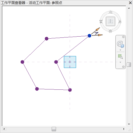 可从项目环境内的所有模型视图中使用工作平面查看器。 默认方向为上一个活动视图的活动工作平面。