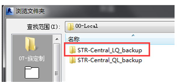 从中心文件创建一个本地副本文件的时候,会和本地文件保存加一个“_backup”后缀的文件夹,如图所示。