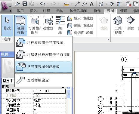 以当前视图F2创建视图样板,如(图-2)所示在视图面板下选择“视图样板”选项的“从当前视图创建样板”,则新创建的样板属性是以当前视图为基础的。