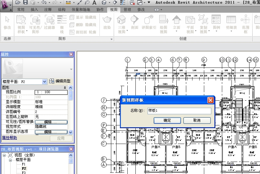 在出图时,我们若为每一个楼层平面都进行平面处理,则会比较繁琐,在这种情况下我们可以在设置好一个楼层平面,将该方案储存到视图样板中,其他的楼层只需要应用该样板就可以了,无需再进行设置。