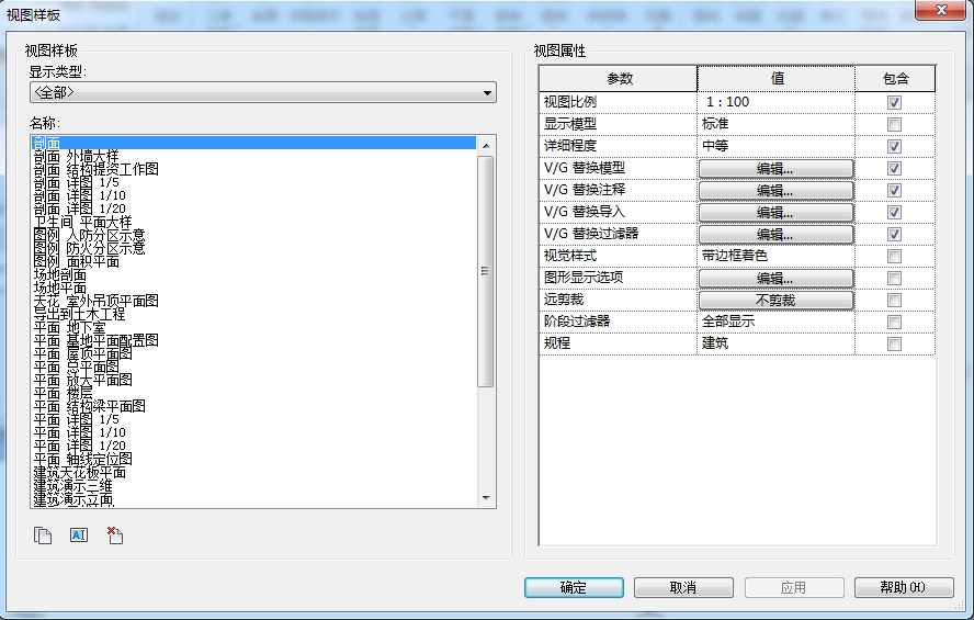 注意:视图样板主要控制视图属性,我们可以在样板文件中预先创建好各种视图样板,如图-6所示。