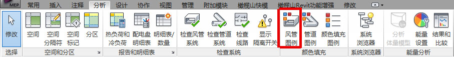 然后在“分析”选项卡中找到“风管图例”,如(图-2)所示: