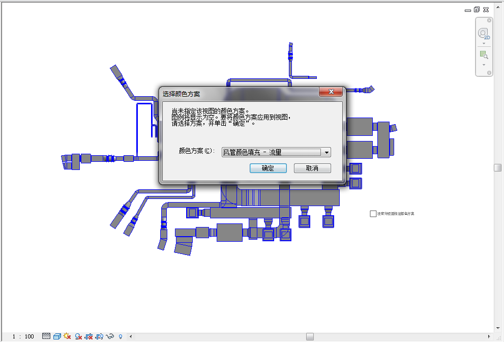 至少一项中填写项目要求的最低净高。点击确定后风管的填充颜色就按照图例设置的改变,如(图-5)所示: