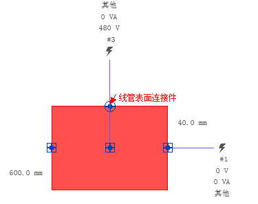 这是导入的一个开关柜的平面图,它的后面有一个线管表面连接件,如下图所标注的地方,我可在上面右击选择在面上绘制线管