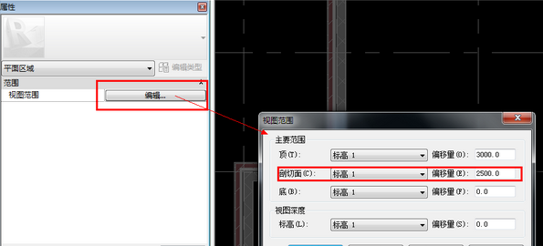 调整这块平面区域的单独的视图范围,使窗在此平面图上可见: