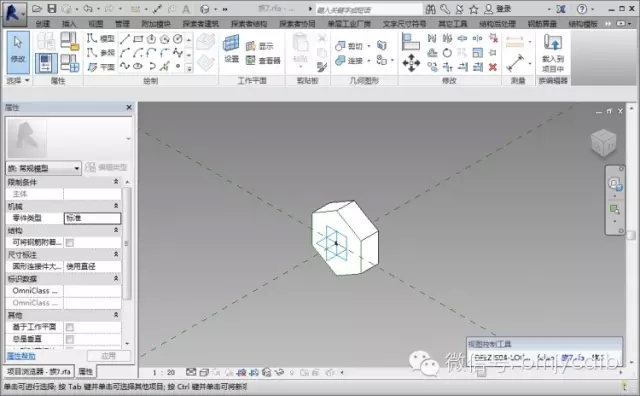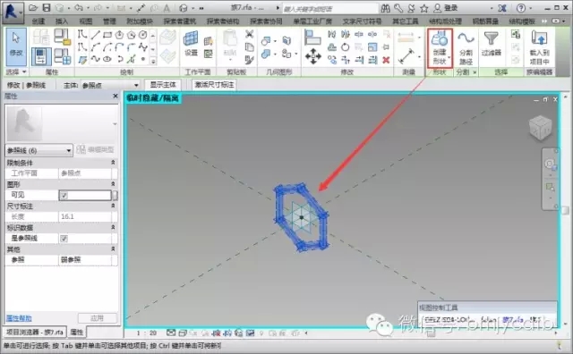 3、新建自适应常规模型(阵列图元),打开平面视图,在中心放置一个参照点,设置工作平面为点的前后面,用参照线绘制一个六边形,创建形状,如下: