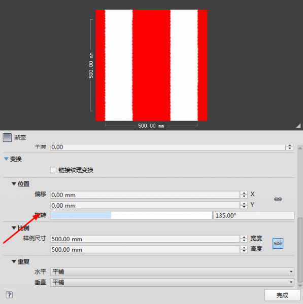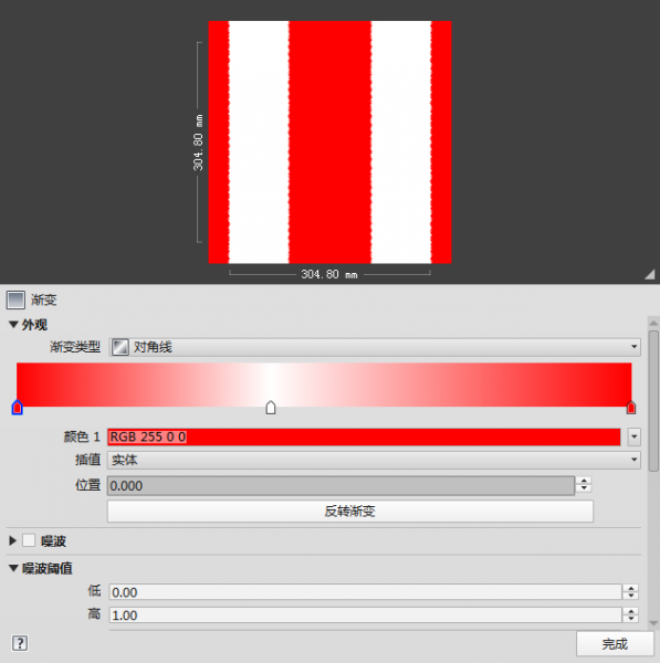 渐变类型 改为对角线 ,颜色始末端均为红色 中间位置在0.41颜色为白色 插值均为实体 。第三步 调整旋转角度,横杆旋转45度,纵向杆旋转135度