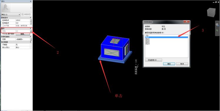 3、点击“确定”,选择需要控制显隐性的构件,在图形的可见中关联添加对应的可见性参数,如图所示。