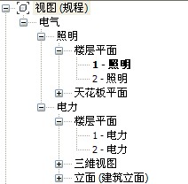 对于MEP项目文件中有子规程情况下,例如,设置规程为“电气”,“照明”作为子规程,则照明分支也将添加到项目浏览器的“电气”下。如图3。
