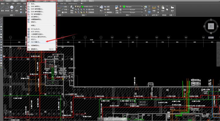 2、打开CAD找到插入--“OLE对象···”,如图所示。