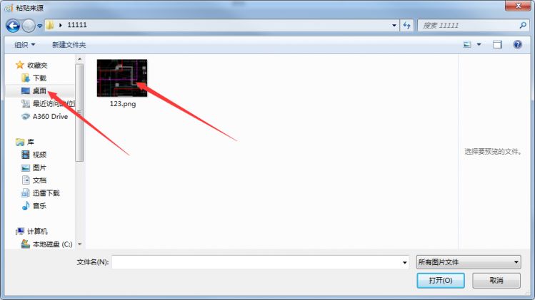 4、单击“粘贴”下拉按钮中的“粘贴来源”,找到在桌面存三维截图的图片,单击“打开”,如图所示。