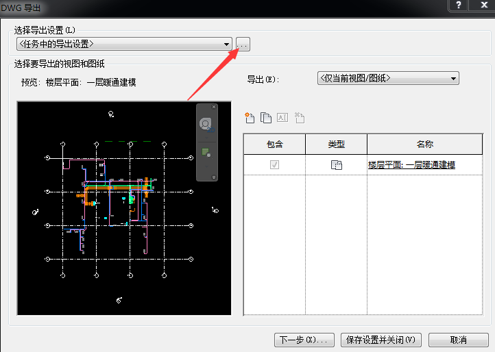 3、再弹出的“DWG导出”对话框中,点击任务中的导出设置旁“修改导出设置”按钮,如图所示。