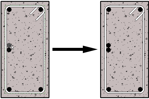 放置钢筋后,可以移动、剪切、粘贴或更改先前约束新钢筋的钢筋类型。约束钢筋移动并相应调整,如以下示例中所示。