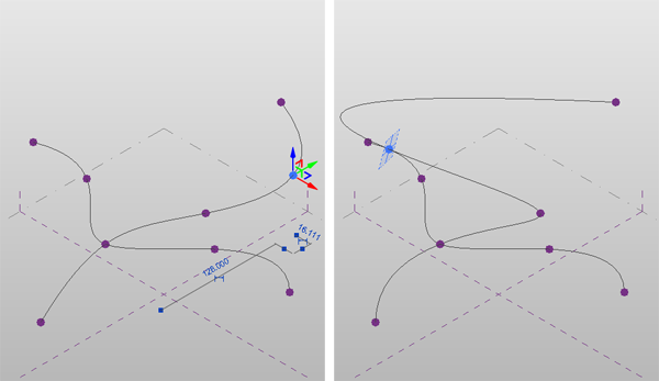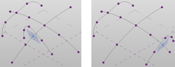 变更驱动点的主体时,与其相关的所有几何图形都会相应地移动。 如果新主体是样条曲线,则驱动点将成为沿该样条曲线的基于主体的点。 最初作为点主体的样条曲线将保持可修改状态,并调整到新的主体位置。