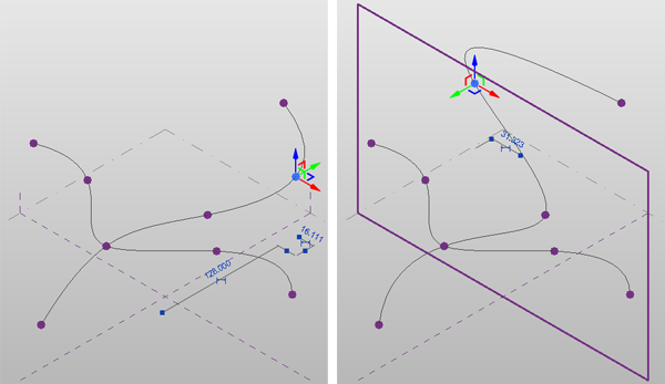 为工作平面中应用了样条曲线的基于主体的点变更主体