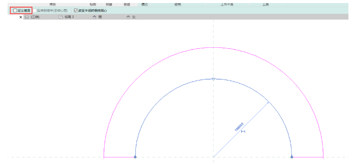 4.2使用“边界线”画一个如图所示的图形,宽度4m,半径10m。