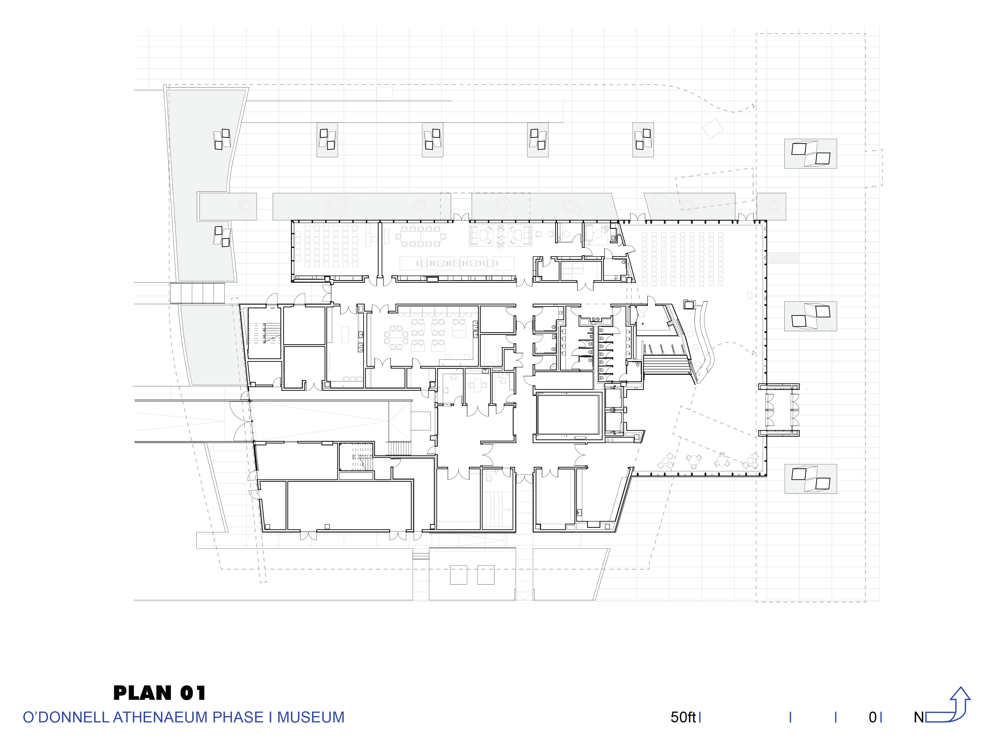 The result is the Edith and Peter O'Donnell Jr. Athenaeum. Located at the southeast corner of the UT Dallas campus, the cultural district forms a new gateway organized around a central plaza flanked by museums, a performance hall, and a parking structure. The plaza, imagined as the social heart of the Athenaeum, is designed to be alive with students and activity, open for studying, socializing, and enjoying art, events, and performances.